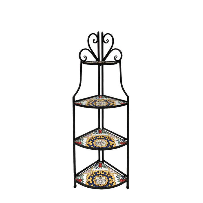 Scaffale angolare in metallo con 3 ripiani mosaico - Caltagirone
