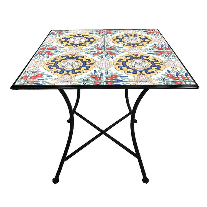 Tavolo quadrato da giardino in metallo con mosaico - Caltagirone