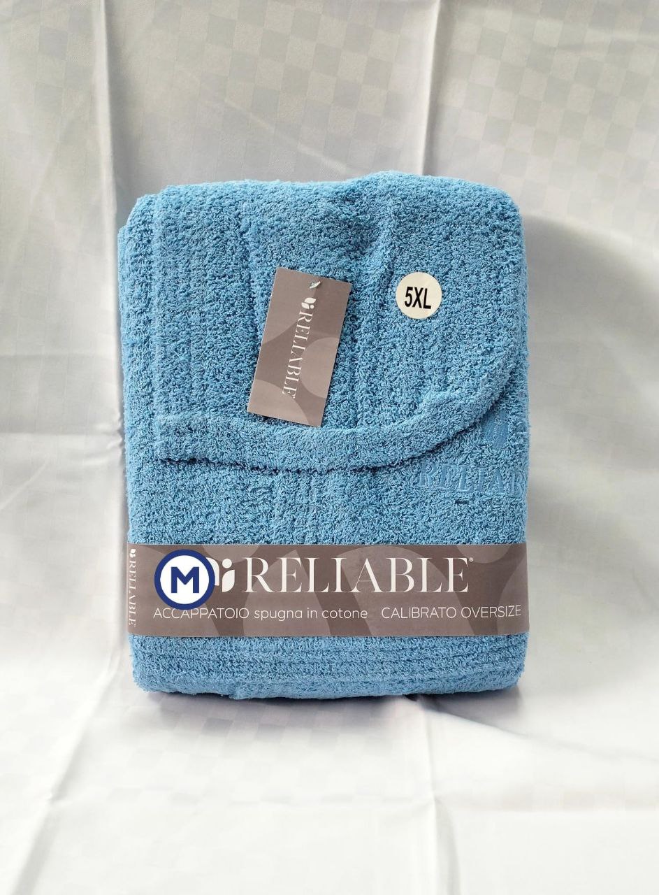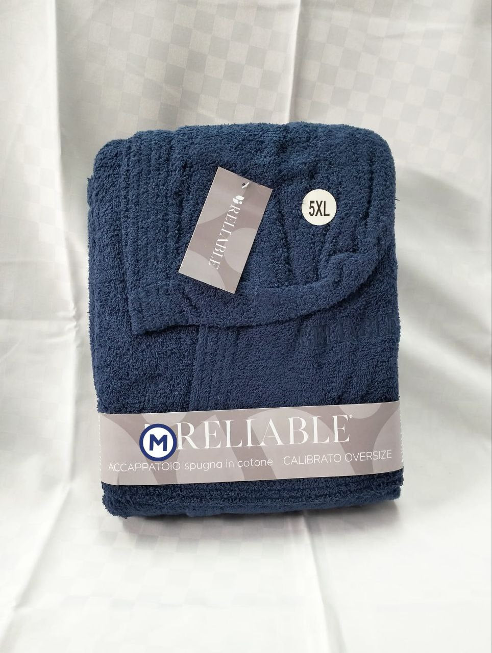 accappatoio calibrato in morbida spugna di cotone al 100%. Le taglie disponibili sono in diverse varianti: blu scuro (3/4/5XL), celeste (4/5XL), blu royal (4/5XL) e panna (4XL).