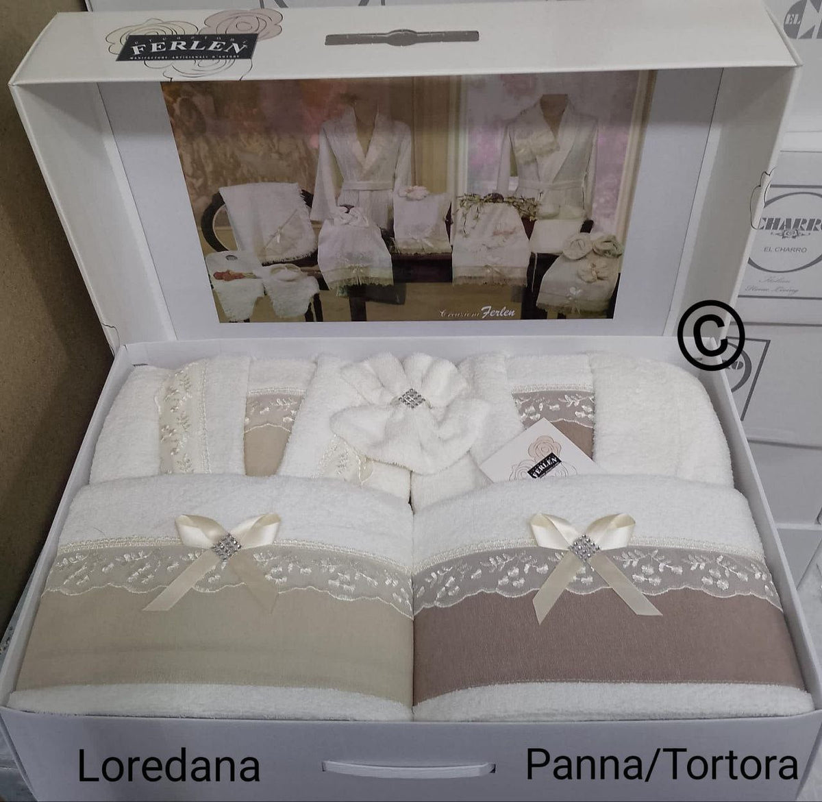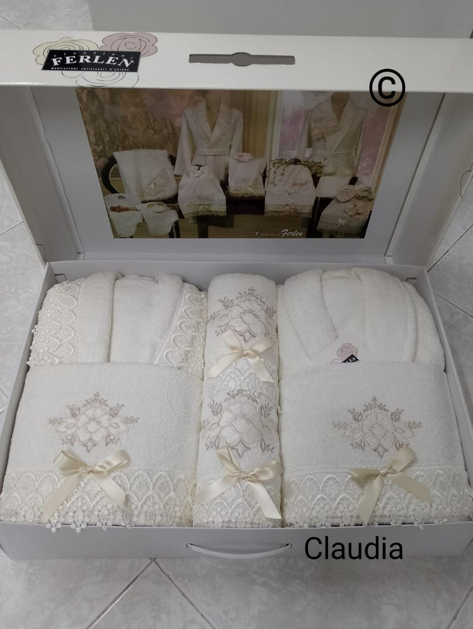 Concediti il meglio per il tuo benessere. Questo completo bagno da 8 pezzi unisce la funzionalità alla bellezza estetica. Ogni pezzo è impreziosito da una graziosa balza in pizzo, mentre la spugna in puro cotone 100% italiano assicura una morbidezza avvolgente e una performance di assorbenza senza pari. Disponibile per le taglie 48/52 e 50/54 e confezionato in una raffinata scatola Ferlen Made in Italy, è la scelta ideale per chi cerca qualità, comfort e uno stile inconfondibile