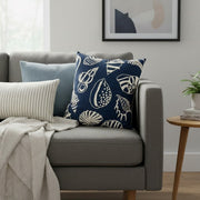 Cuscino blu e bianco con ricamo marino 45x45 cm