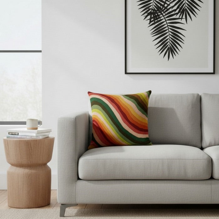 Cuscino in lana acrilica con ricamo onde colorate 45x45 cm
