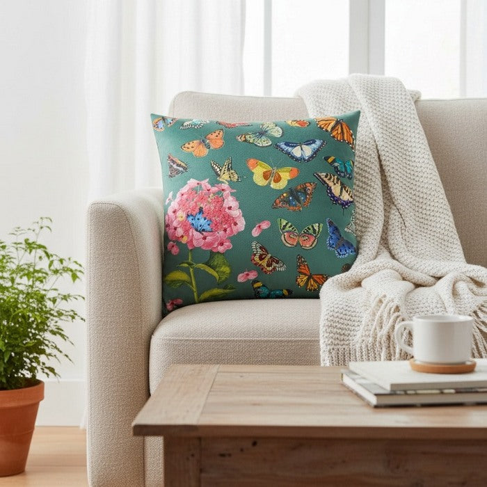 Il nostro cuscino in velluto con ricami Farfalle 45x45 cm è un inno alla leggerezza e alla bellezza della natura....
