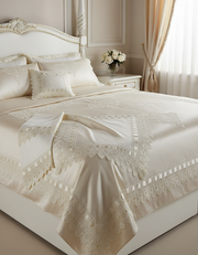 Le lenzuola con balza in pizzo e passa nastro sono un'ottima scelta per chi cerca un tocco di eleganza e raffinatezza. Questa versione è disponibile nella misura matrimoniale maxi, perfetta per un letto spazioso e confortevole. Sono lenzuola sposa, ideali per rendere la camera ancora più speciale.