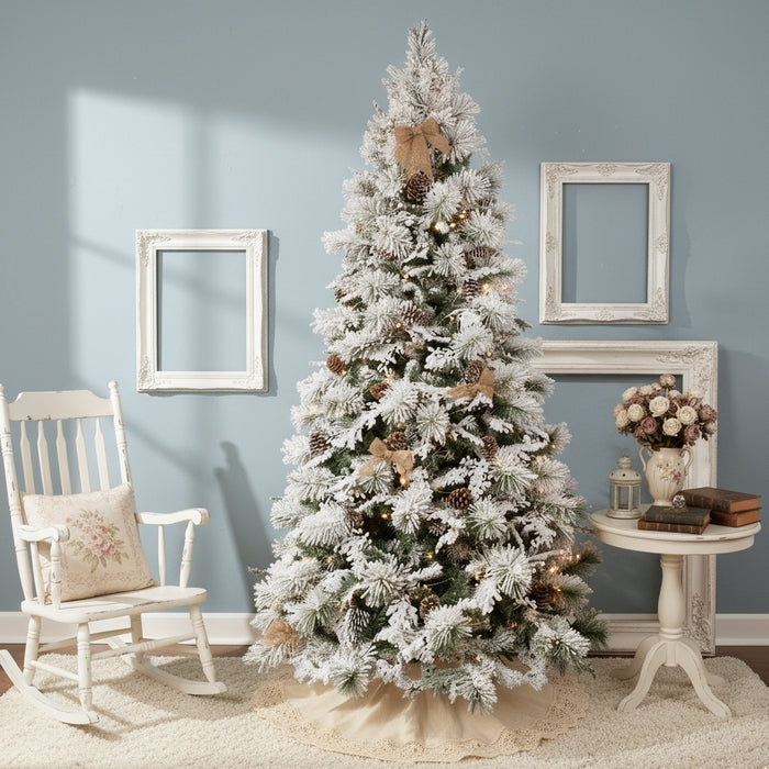 Albero di Natale innevato con pigne - Chamonix - Ø105x180h cm