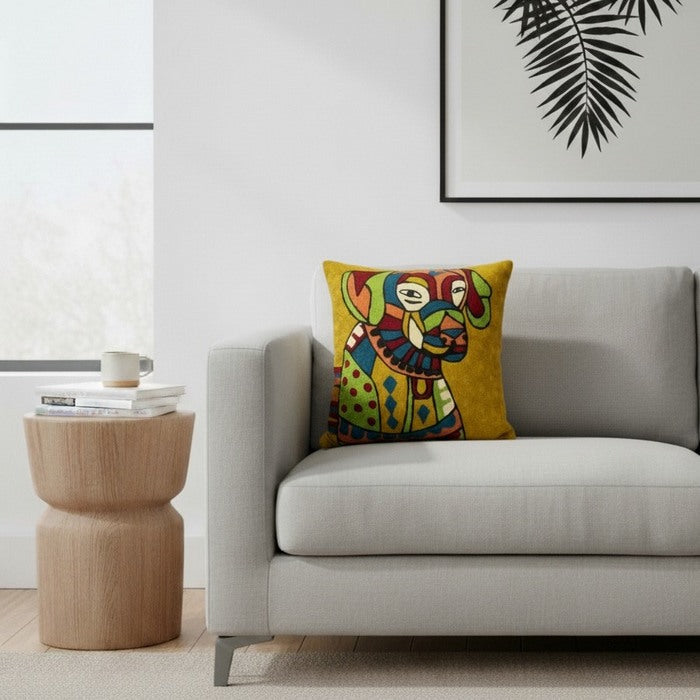Cuscino in lana acrilica con ricamo cane 45x45 cm