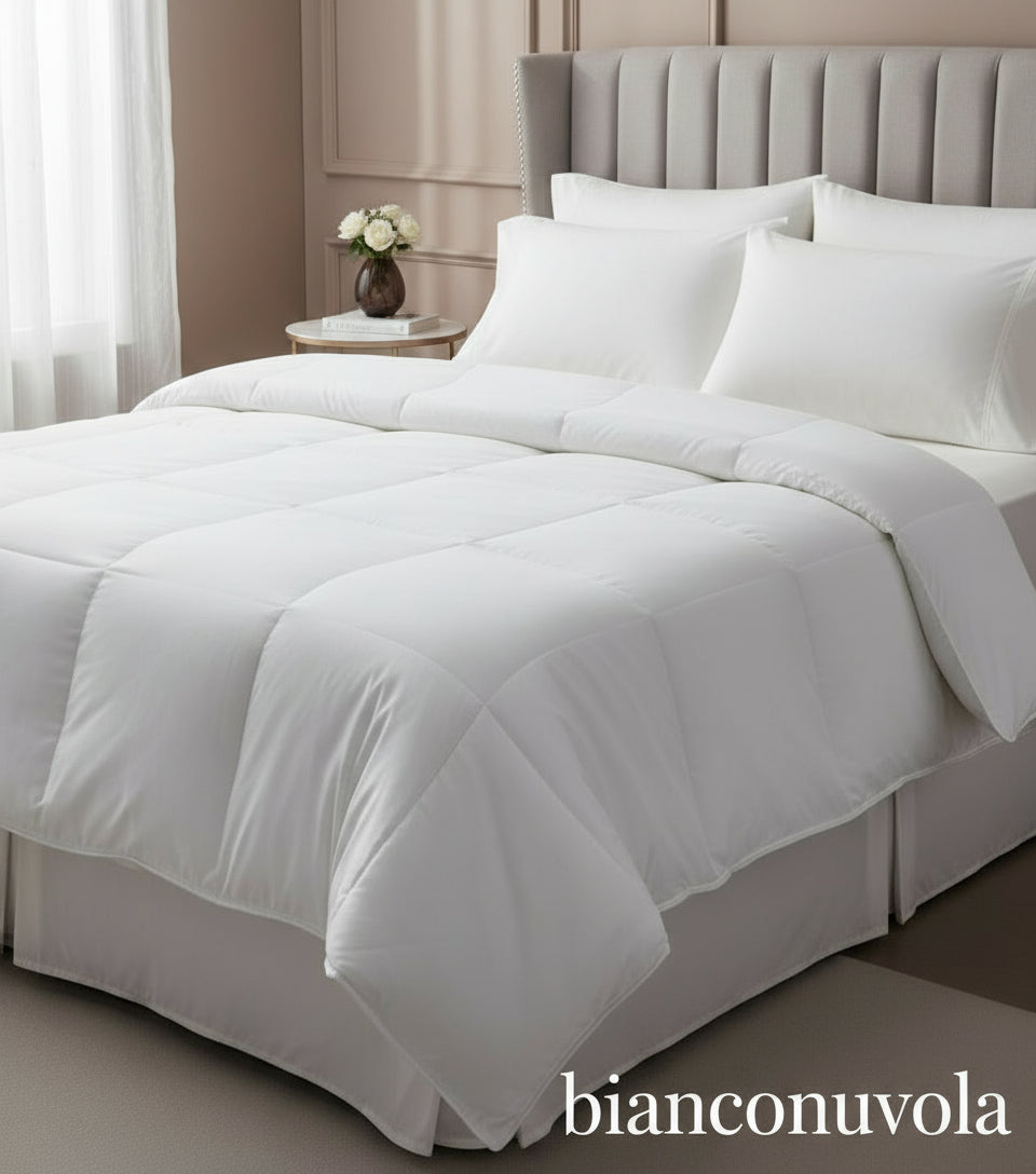 Imbottitura piumino anallergico dalle misure maxi per letto singolo , prodotto interamente in Italia con materiali di alta qualità. Questo piumino è progettato per offrire il massimo comfort durante il sonno, grazie alla sua imbottitura leggera ma calda, ideale per mantenere una temperatura corporea costante nelle stagioni più fredde. La composizione anallergica lo rende perfetto per chi soffre di allergie o ha una pelle particolarmente sensibile, garantendo un riposo sano e sicuro. Le misure maxi assicurano una copertura totale del letto, avvolgendo il corpo in una piacevole sensazione di morbidezza. Essendo un prodotto italiano, si distingue per la cura nei dettagli, la qualità delle finiture e la durata nel tempo.