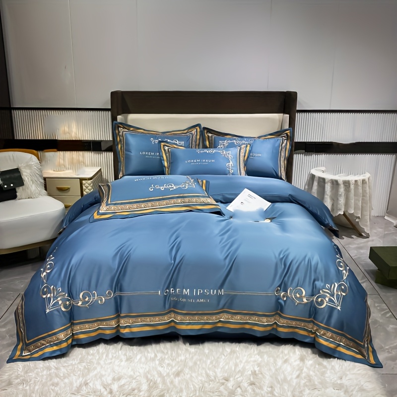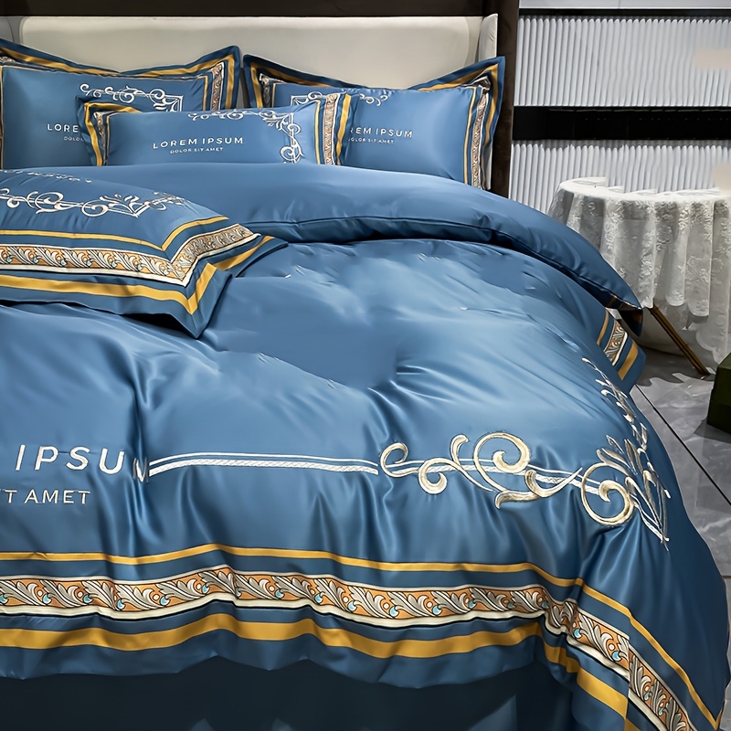 Set da Letto ricamato con stampa digitale - copripiumino, un lenzuolo e due federe. - Queen 220x240cm / Austin - Blu