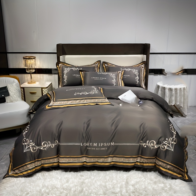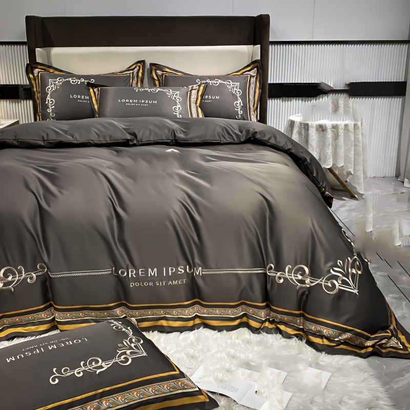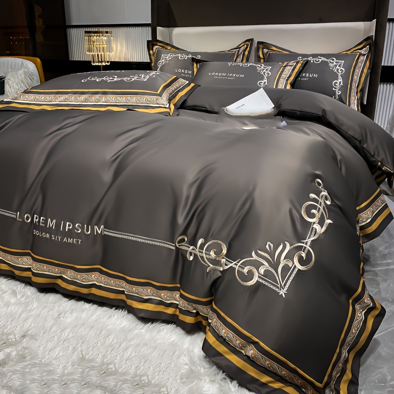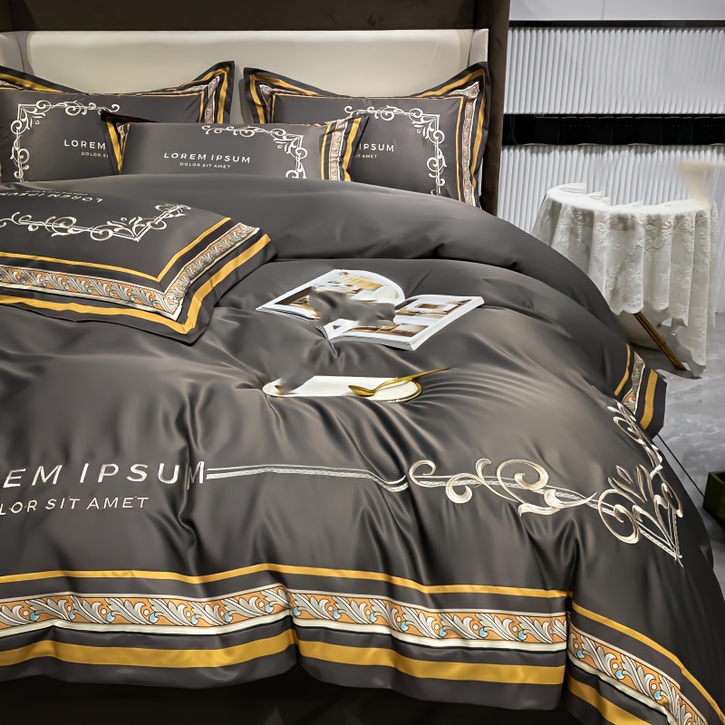 Set da Letto ricamato con stampa digitale - copripiumino, un lenzuolo e due federe.