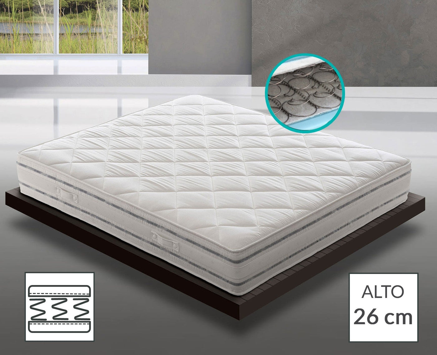 Materasso a Molle Box Ignifugo Certificato Classe 1 IM H26 cm