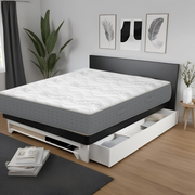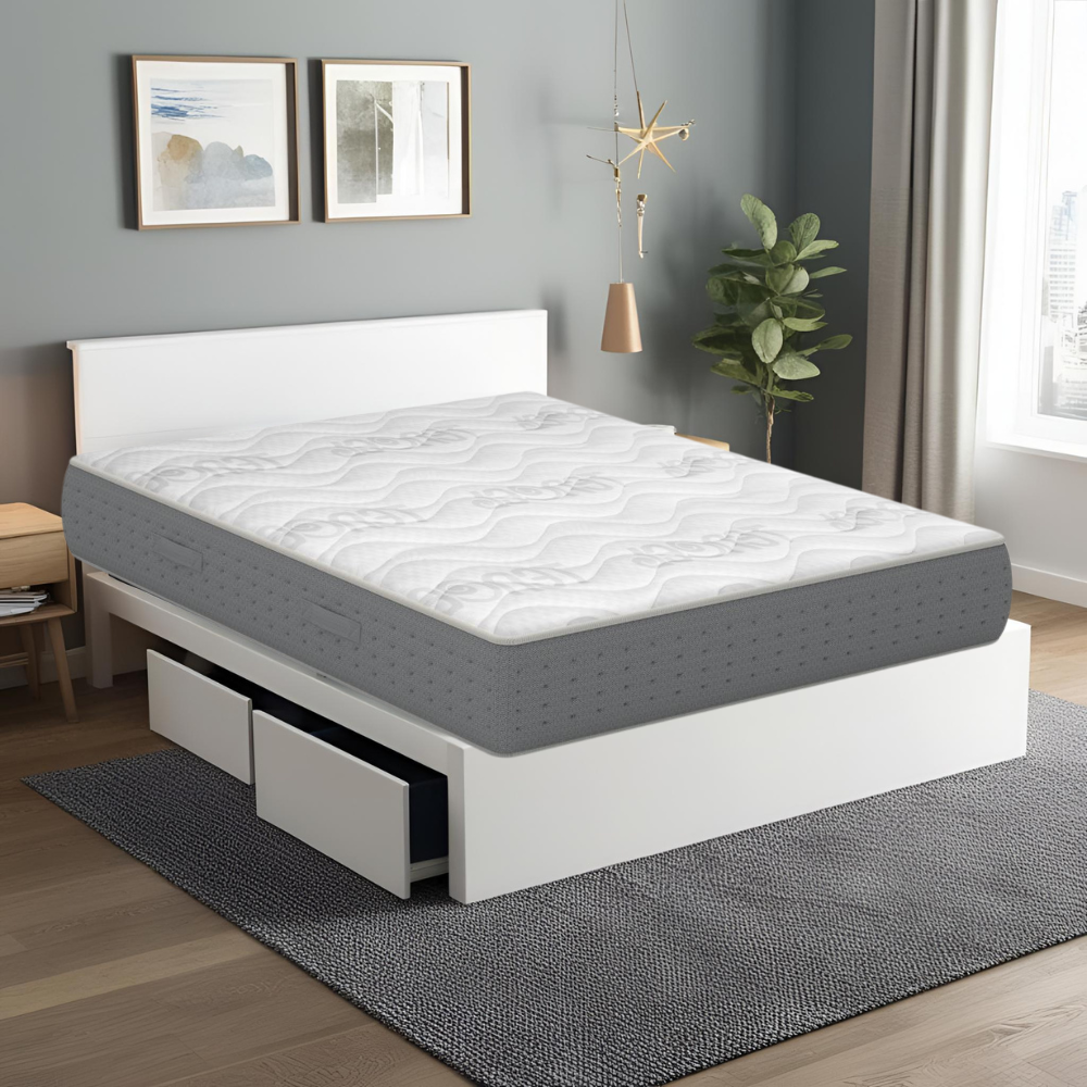 Materasso in memory foam H28 cm. Tessuto con elegante bordatura, dal design trapuntato. Anallergico e antiacaro con fascia d'areazione su tutti i lati del materasso.