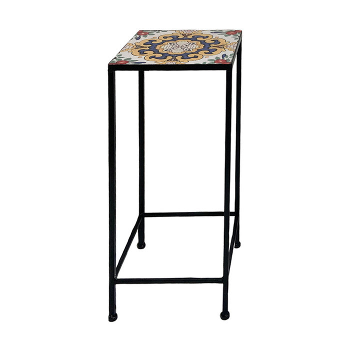 Il mosaico sul piano aggiunge un tocco di eleganza all'ambiente, rendendo questo tavolino una decorazione perfetta ma allo stesso tempo resistente per l'esterno.