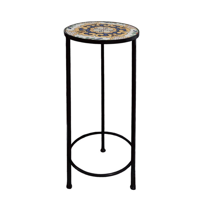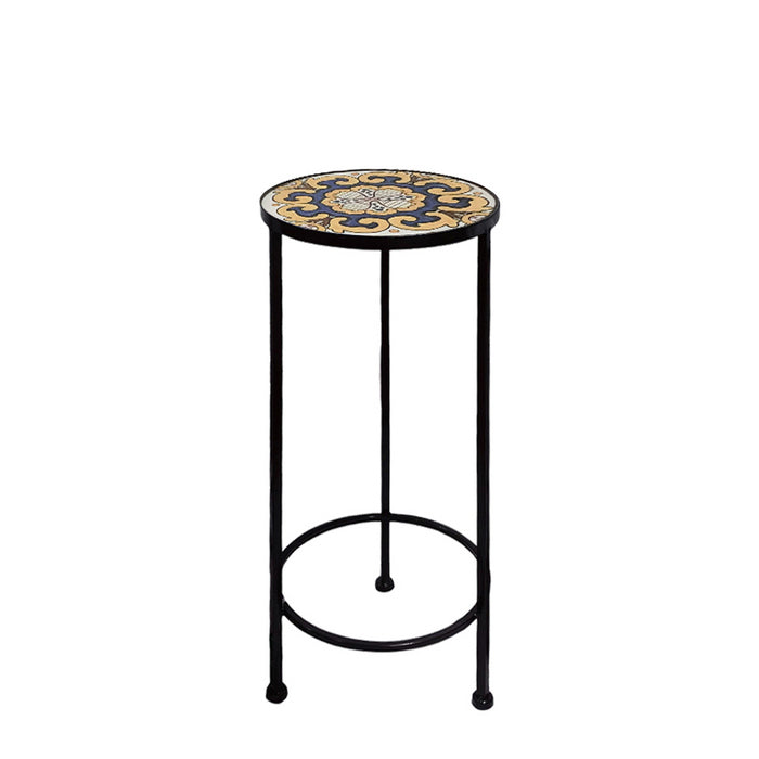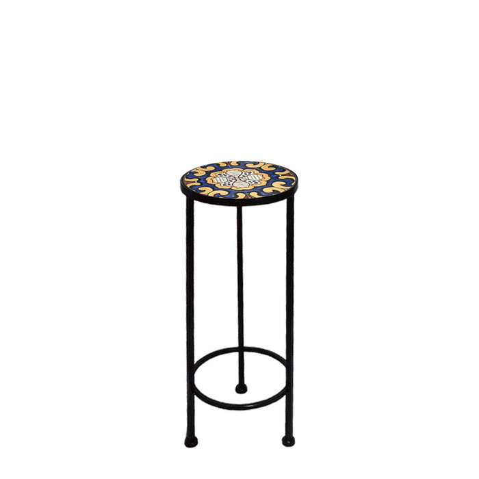 Supporto rotondo per piante con mosaico - Caltagirone - Ø30x67h cm