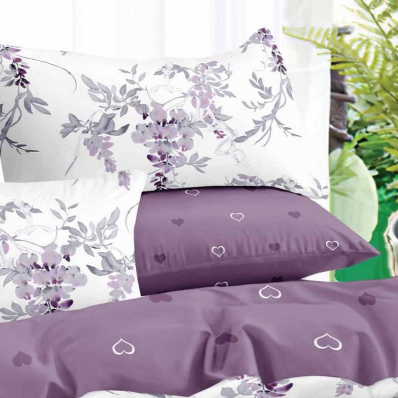 Set copripiumino bicolore floreale 3 pezzi - copripiumino e due federe. - Violet / 160cm*200cm